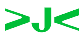 Green abstract logo with a central 'J' and two symmetrical shapes.