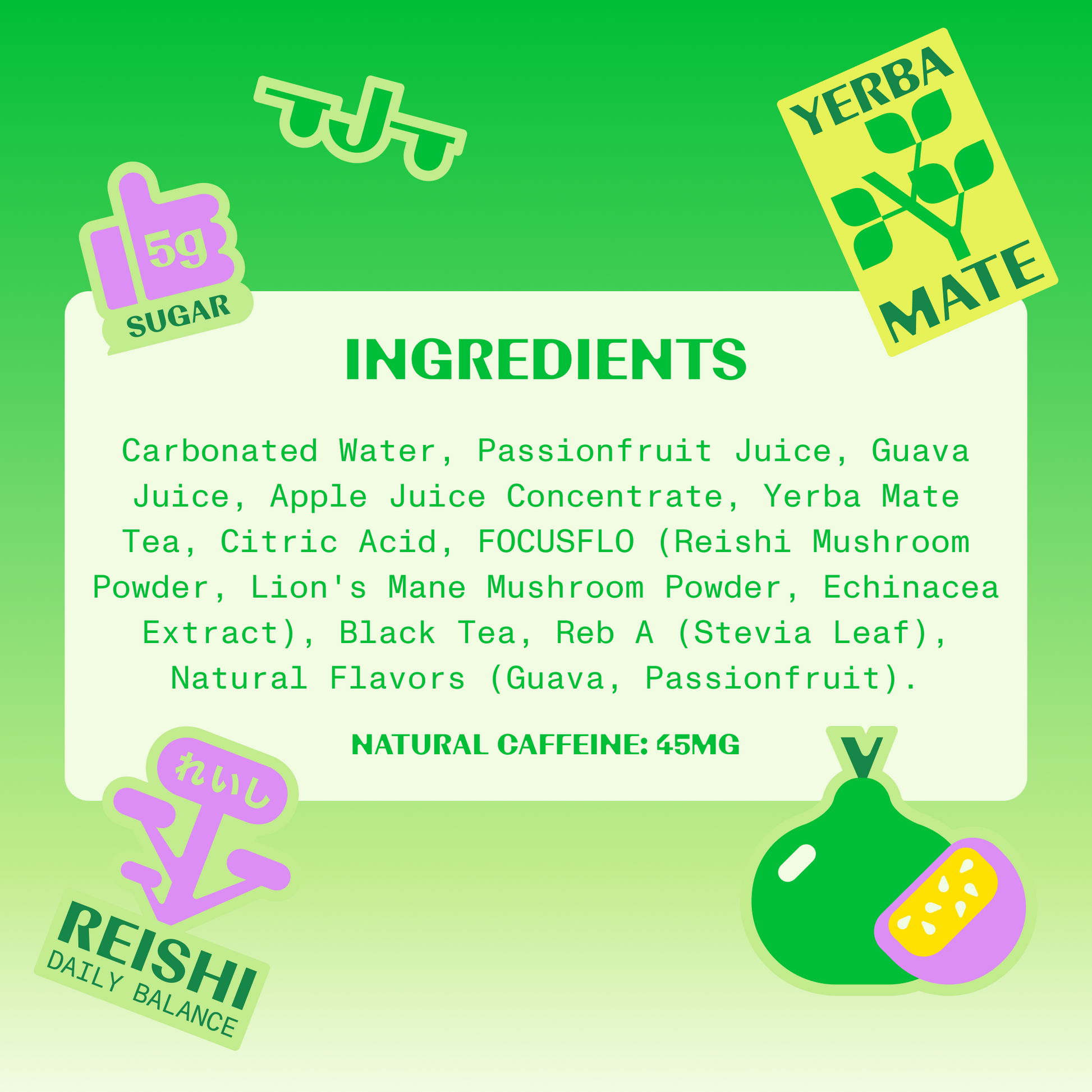 Feeling foggy? Guava Passionfruit is a juicy mental refresh with tropical vibes. Underneath the flavor, you’ll find Flojo’s signature clean energy blend—low caffeine, high function, and made for your brain. It’s perfect for powering through busy days, study sessions, or anything that demands your attention.